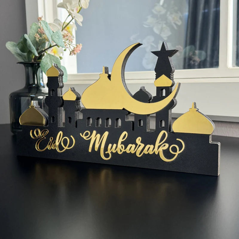 Acrylic Eid Mubarak Table Decor – Mosque Skyline Sign
