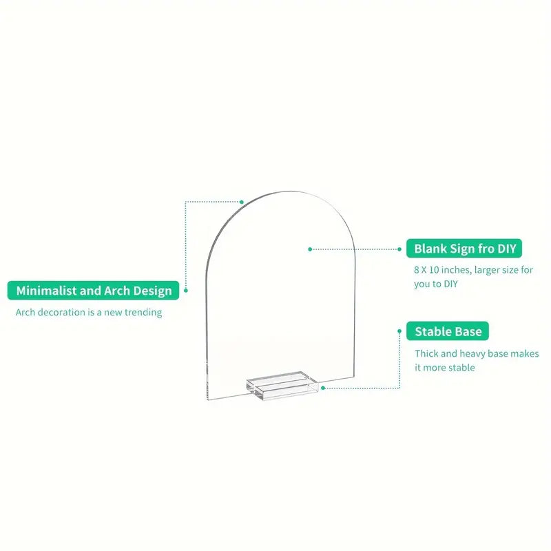 - Sleek and Transparent Design: Crafted from premium clear acrylic, these arch-shaped signs blend seamlessly with any theme or decor style, providing a clean and polished look.