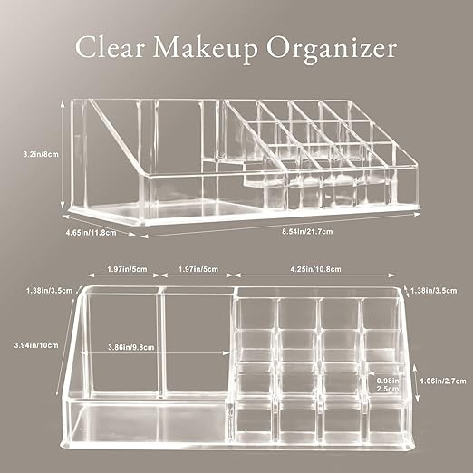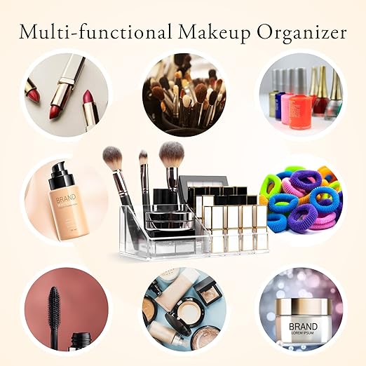 Keep your beauty products neat and stylishly displayed with this clear acrylic makeup organizer. Featuring 16 slots, it’s perfect for storing lipsticks, cosmetic brushes, skincare essentials, and other small beauty items. The transparent design makes it easy to see and access your products while adding a modern touch to your dresser, vanity, or bathroom counter.