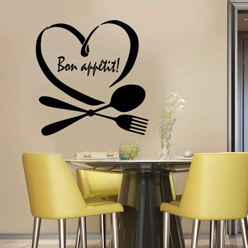 Spoon & Fork with Heart - Beautiful Kitchen Wall Decal - Best For Home & Restaurant