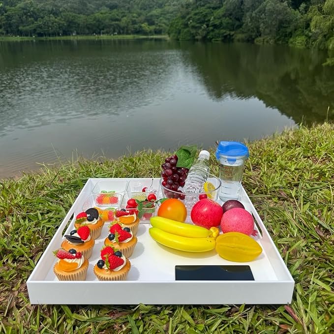 White Acrylic Large Ottoman Tray with Handles – Spill-Proof Decorative Serving Tray